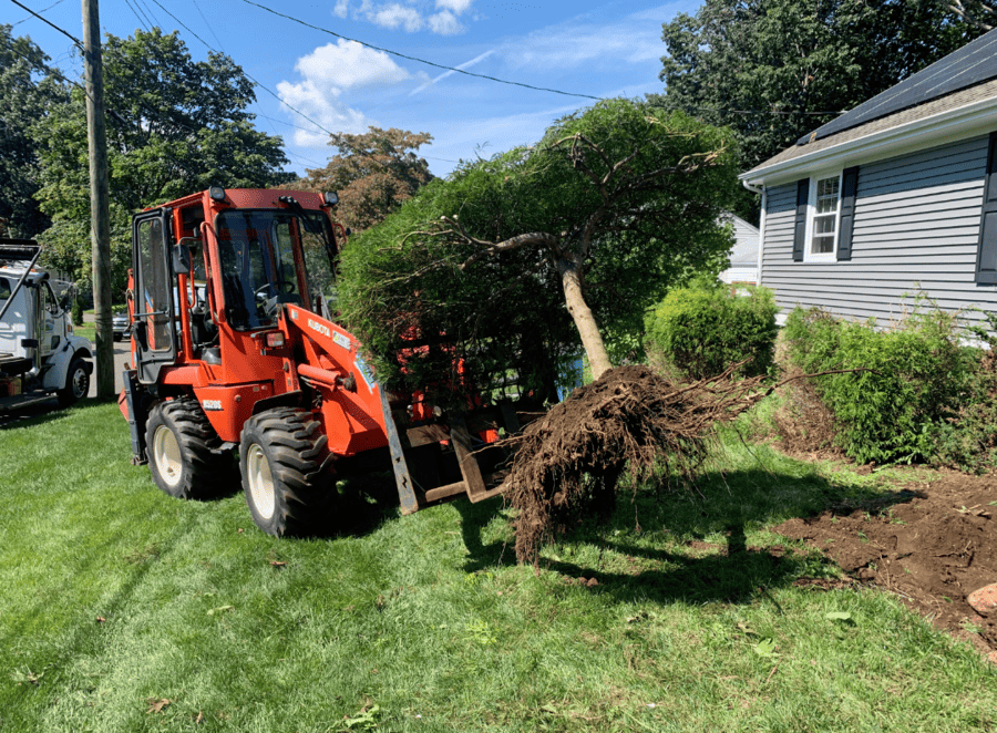 Next, we removed all unwanted plants to give the property a clean slate. However, the homeowner wanted to keep their beloved Japanese Maple, so our team successfully transplanted it to a new location—an intricate process requiring care and precision to preserve the tree’s health and root system.